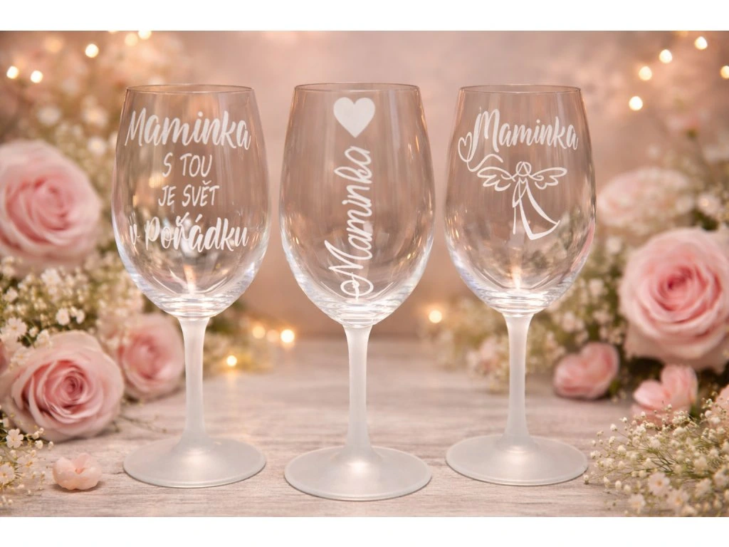 Pískovaná sklenička MAMINKA Sklenička na víno pro maminku